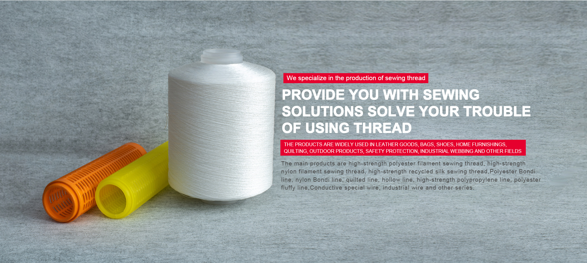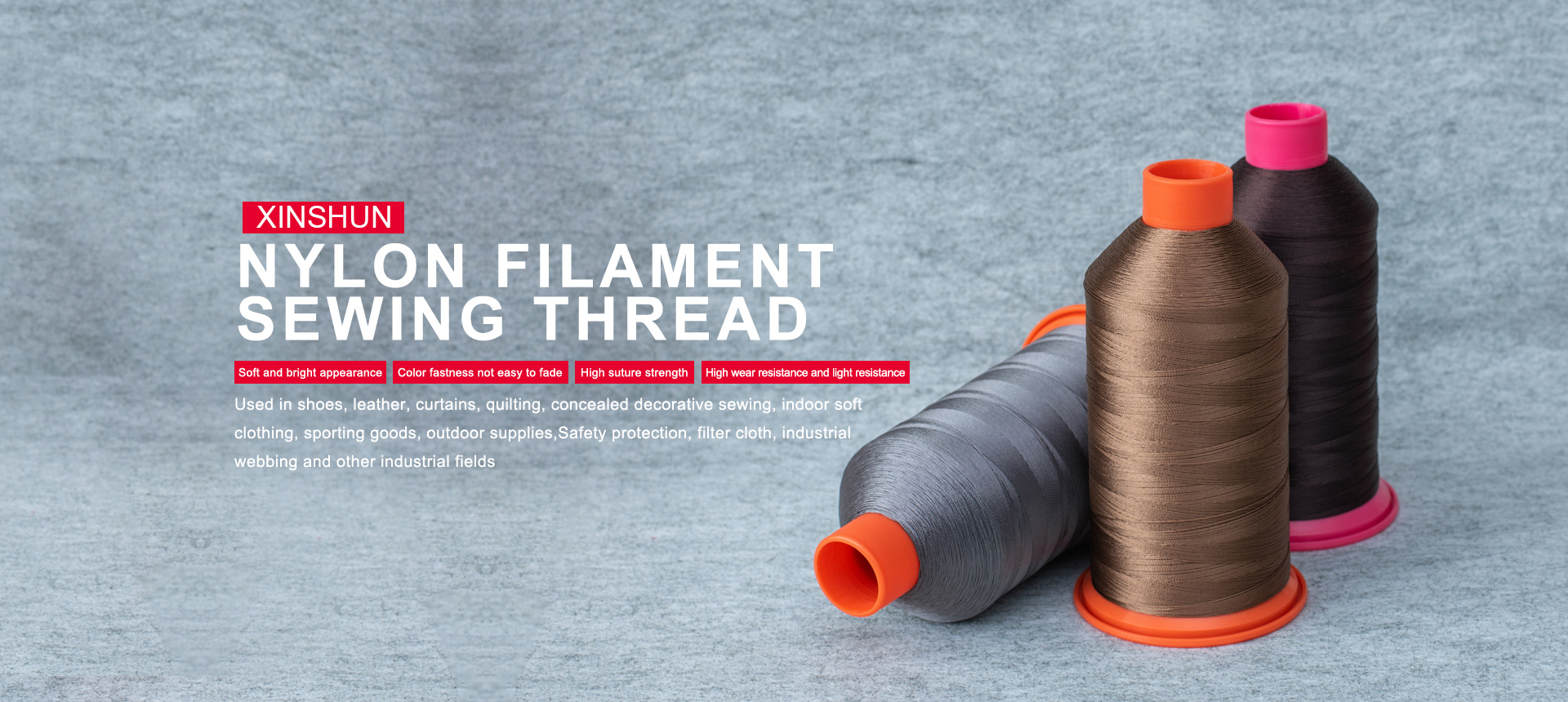 HAI'AN XINSHUN Thread Factory is located in the beautiful Nantong Haian - an important transportation hub along the eastern coast. It is an enterprise that integrates production and trade. The company's main products include high-strength polyester filament sewing thread, high-strength nylon filament sewing thread, high-strength recycled silk sewing thread, polyester bondi thread, nylon bondi thread, quilting thread, hollow thread, high-strength polypropyl…